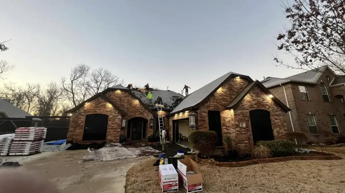 "Had our roof replaced after 25 years. The crew arrived at 7am sharp and had the old shingles torn off by noon. New architectural shingles were up by end of day two. They found and replaced three sheets of rotted decking underneath — showed me photos before proceeding. Magnetic sweep of the yard for nails when they finished. First-class operation."